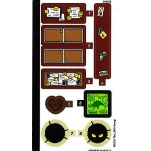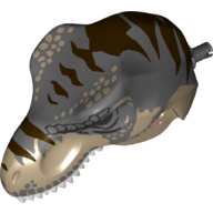 Animal Body Part, Dinosaur, Tyrannosaurus Rex Head with Pin, Light Bluish Grey Teeth, Dark Bluish Gray Top and Dark Brown Stripes Print